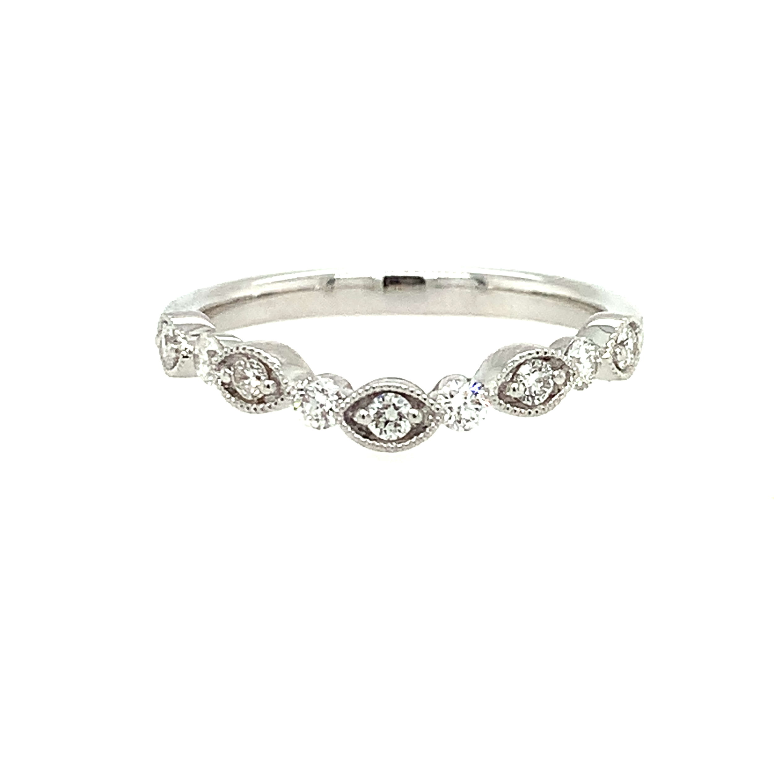 14K WG 9 BR DIA'S 0.28CT SCALLOPED CURVED WEDDING BAND