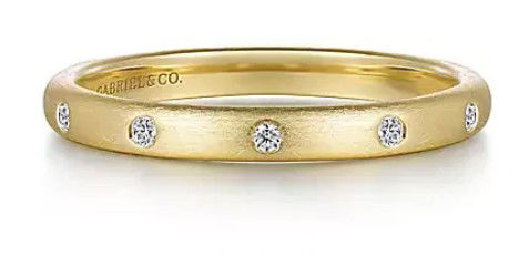 14KYG 5 BR DIAMONDS 0.04CT SATIN FINISH GYPSY SET BRUSHED BAND