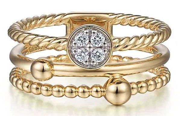 14K YG 4 DIAS 0.09CT TWISTED ROPE & BUJUKAN EASY STACKABLE RING SZ 6.5