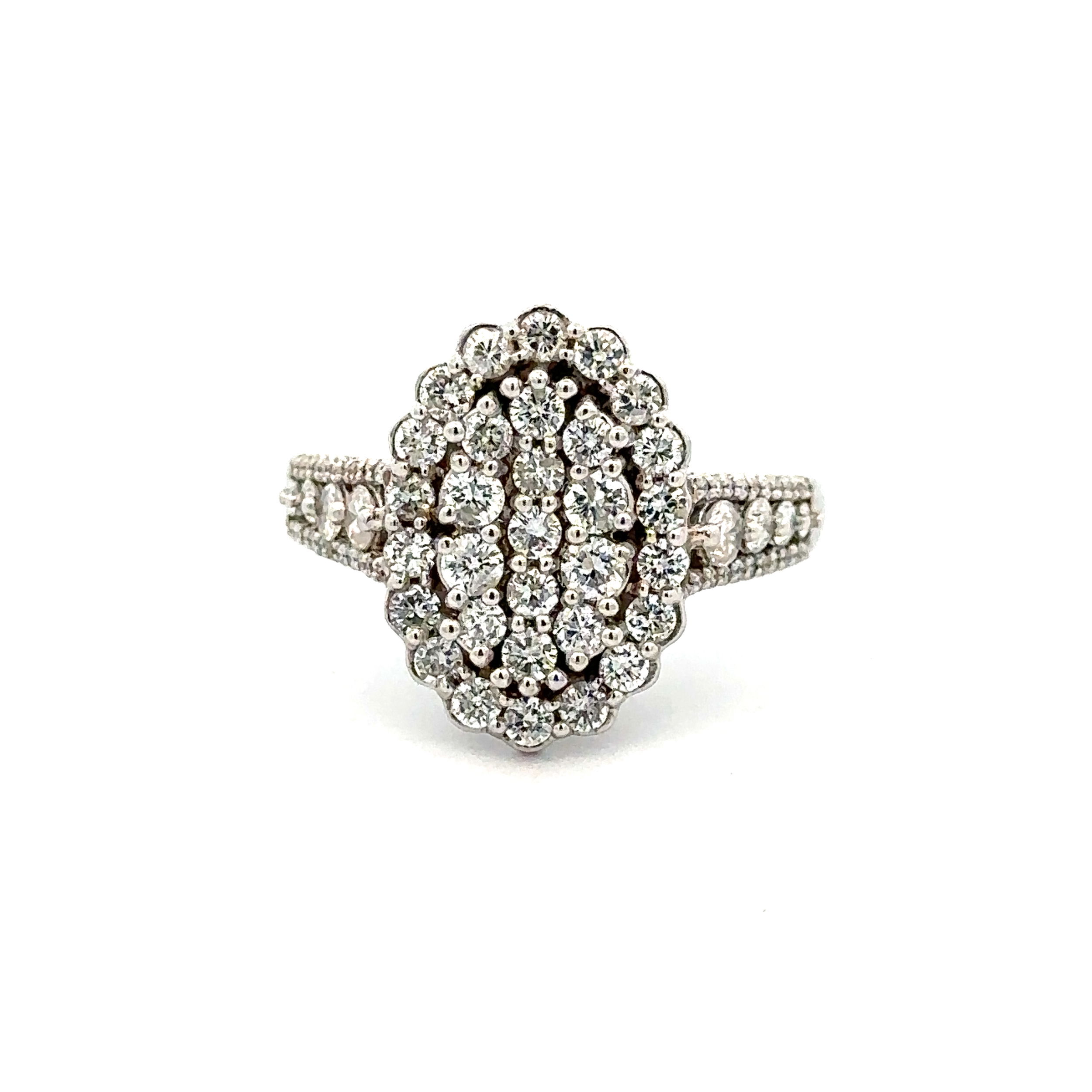 - 14KWG 79 ROUND DIAMONDS 1.54CT OVAL CLUSTER HALO LADIES RING