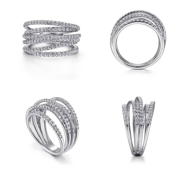 14k White Gold 112 round diamonds 0.98ct Layered Criss Crossing Wide Band Diamond Ring