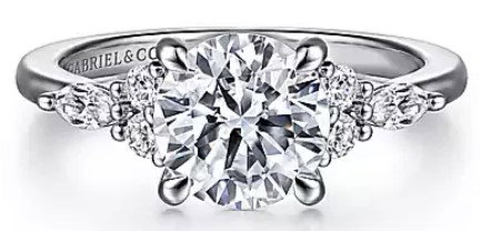 - 14K WG 4 BR & 2 PS DIA'S 0.31CTW "CONTEMPORARY COLLECTION" SEMI-MOUNT SZ 6.5