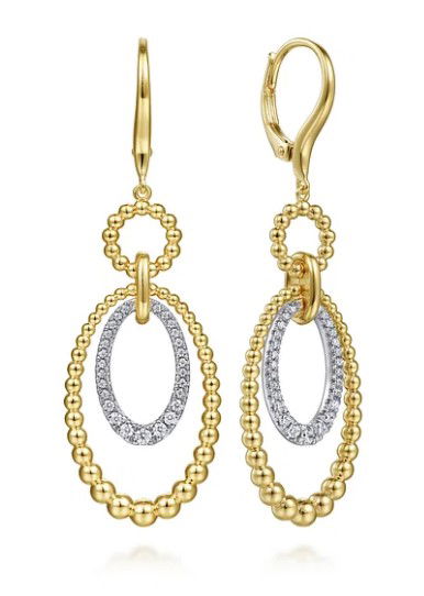 14KYG/WG 54 BR DIAMONDS 0.36CT BEADED BUJUKAN OVAL DANGLE LEVERBACK EARRINGS