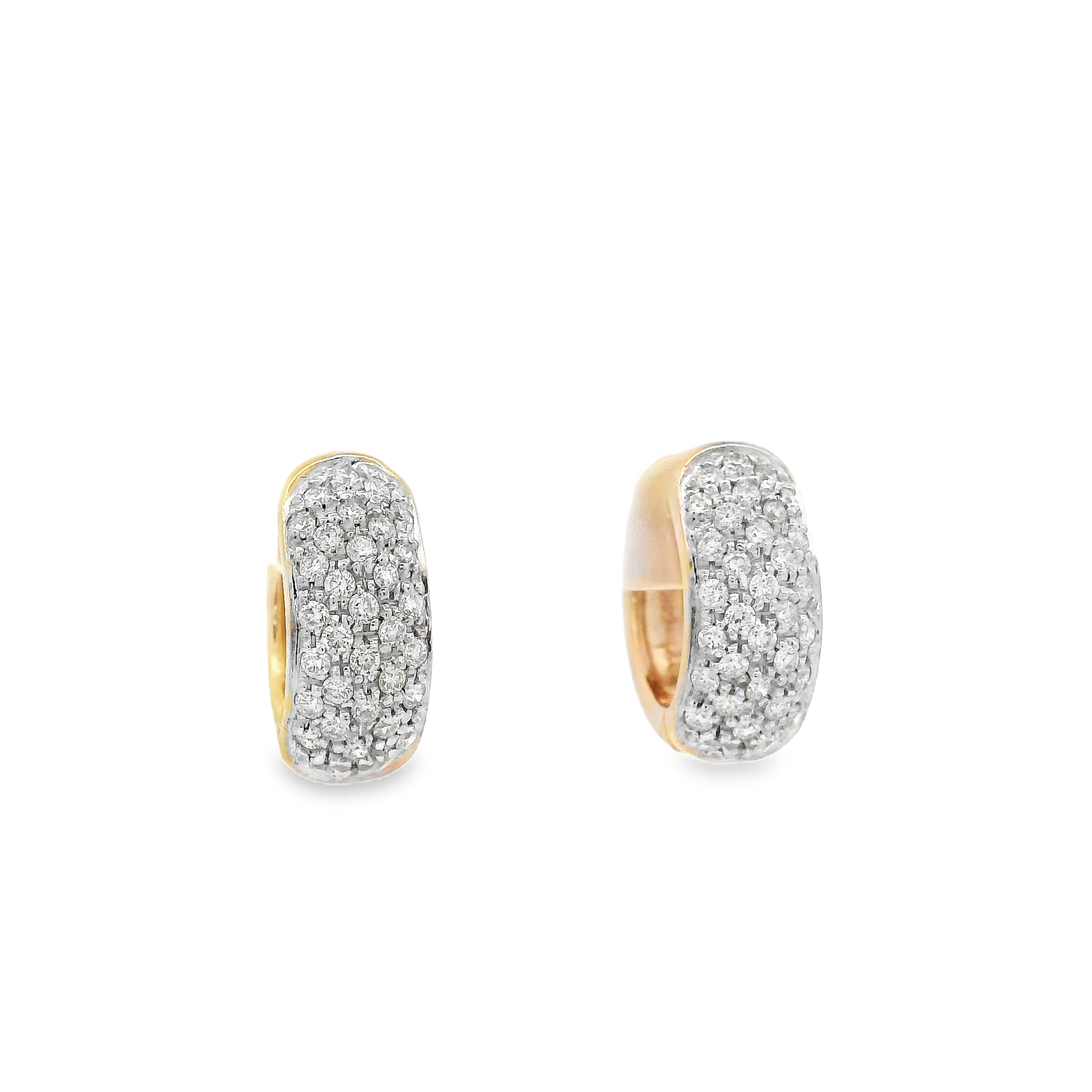 14K YELLOW GOLD PAVE HUGGIE HOOP EARRINGS WITH 66 ROUND DIAMONDS @ 0.68CT