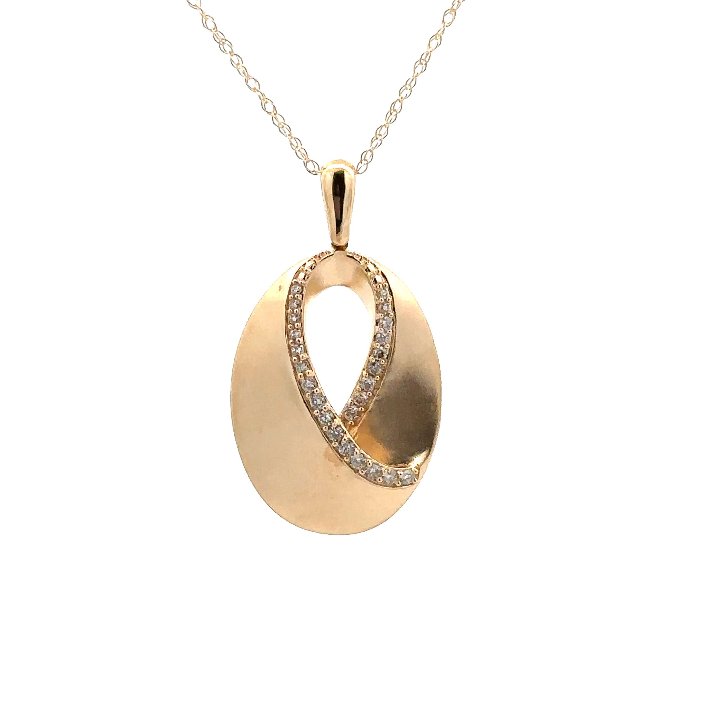 - 14KYG 24 BR DIAMONDS 0.16CT OVAL SATIN FINISH FASHION PENDANT W/18" CHAIN
