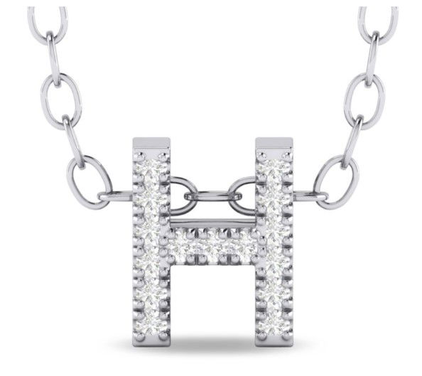 - 10KWG 15 BR DIAMONDS 0.08CT INITIAL "H" SLIDE/PENDANT W/18" CABLE CHAIN