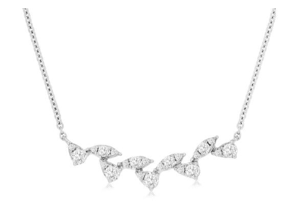 14KWG 22 BR DIA 0.35CT "LEAFY VINE" BAR NECKLACE