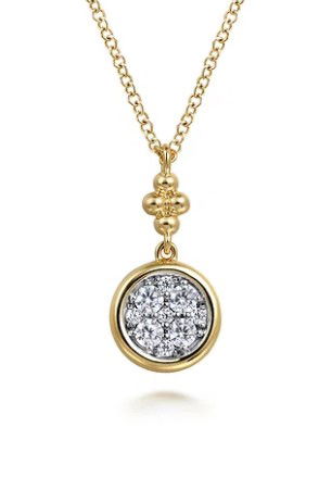 14KYG 9 BR DIAMONDS 0.25CT BEZEL CLUSTER BUJUKAN DROP PENDANT NECKLACE