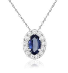 - 14KWG 0.22CT OV TANZANITE & 13 BR DIA 0.10CT HALO PENDANT W/16" CHAIN