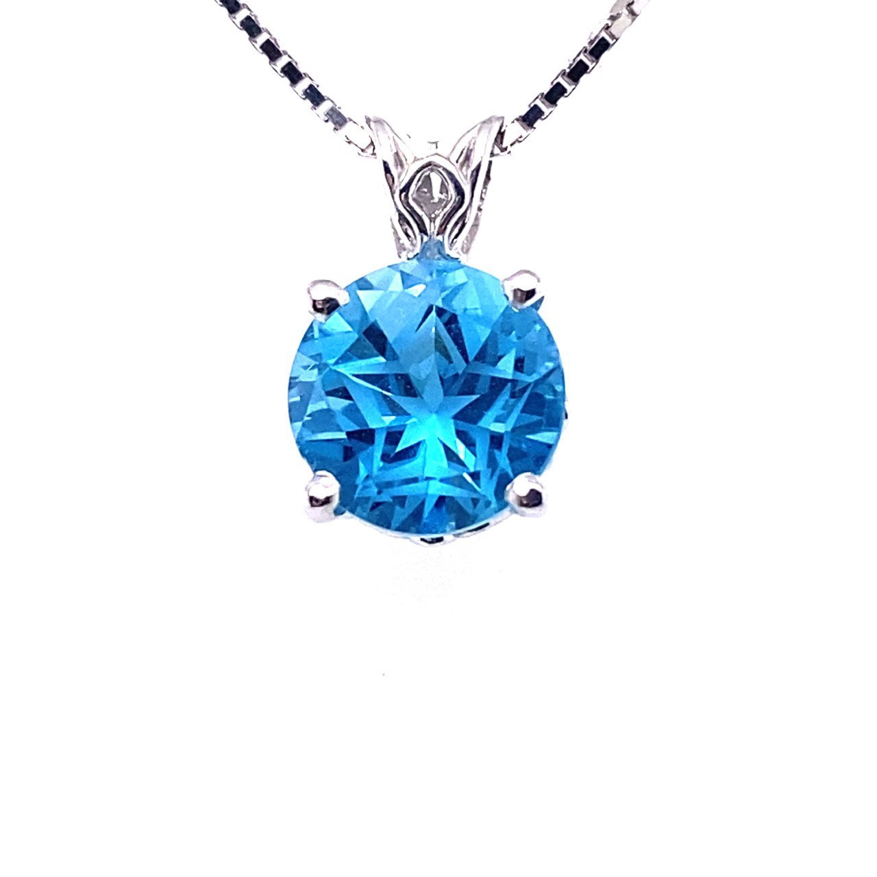 Elevate your look with this exquisite Blue Topaz Pendant. Featuring a stunning round-cut blue topaz set in a polished mount, this pendant captures the brilliance and allure of the gemstone with every glimmer. Its vibrant blue hue brings a touch of sophistication and elegance, making it the perfect accessory for both everyday wear and special occasions. Celebrate timeless beauty with this dazzling statement piece—graceful, refined, and endlessly captivating.