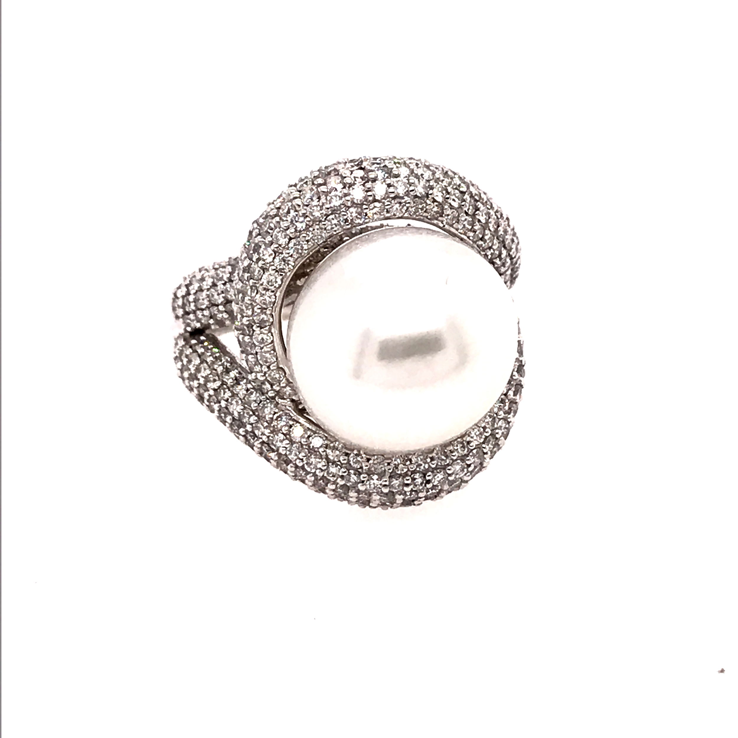 14KWG 13-14MM WHITE SOUTH SEA PEARL & 332 BR DIA 2.22CT PAVE RING