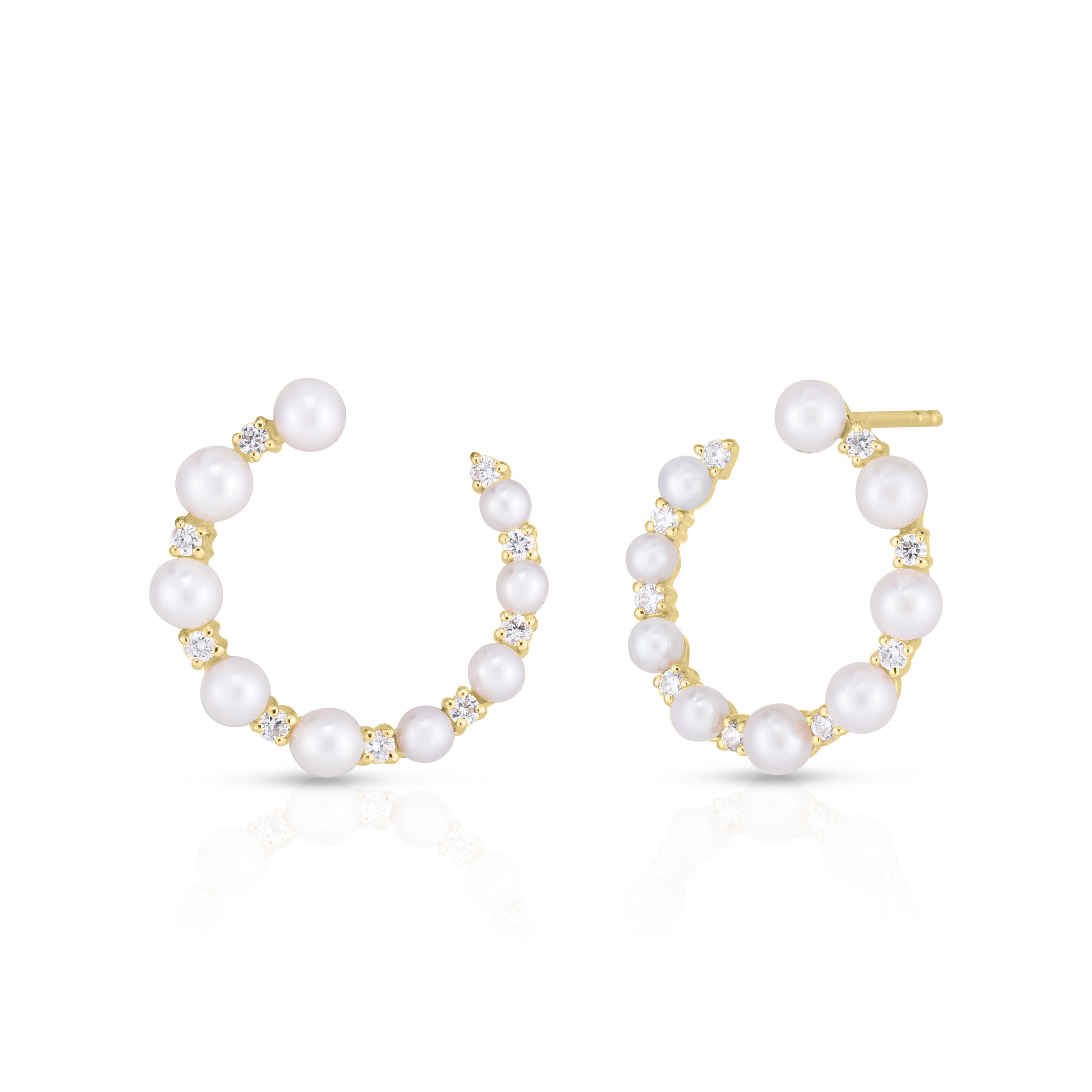 - 14KYG 18 BR DIAMONDS 0.19CT & 18 FRESHWATER PEARL CIRCLE STUD EARRINGS