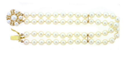 - 14KT YELLOW GOLD 60 PRL & 20 RD DIA'S 0.25CT FLOWER CLASP BRACELET