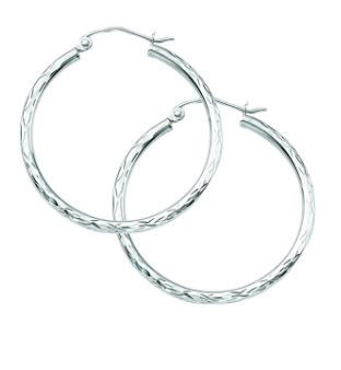 - 14KWG 2X30 DIAMOND CUT TEXTURED ROUND HOOP EARRINGS W/LIFETIME WARRANTY