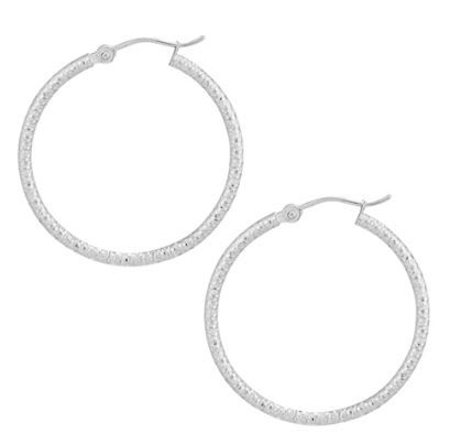 14KWG 2X30MM DIAMOND CUT TEXTURED HOOP EARRINGS