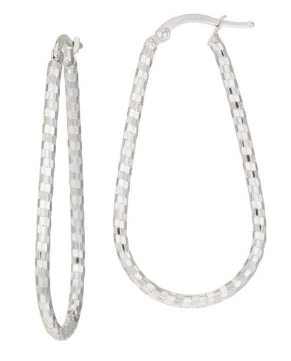 14KYG STRIPE TEXTURE ELONGATED ROUND TEARDROP HOOP EARRINGS