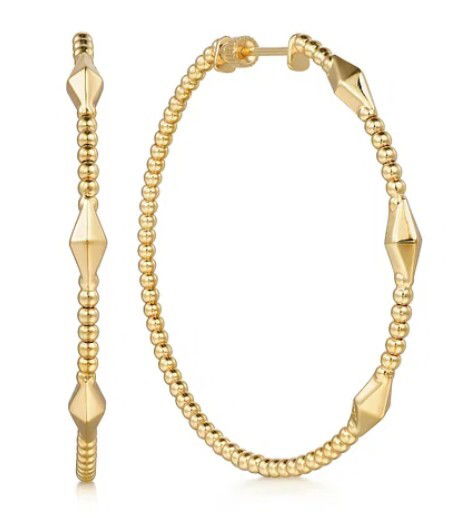 14K Yellow Gold 50mm Bujukan Hoop Pyramid Earrings