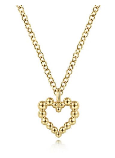 14K Yellow Gold Bujukan Bead Open Heart Pendant Necklace
