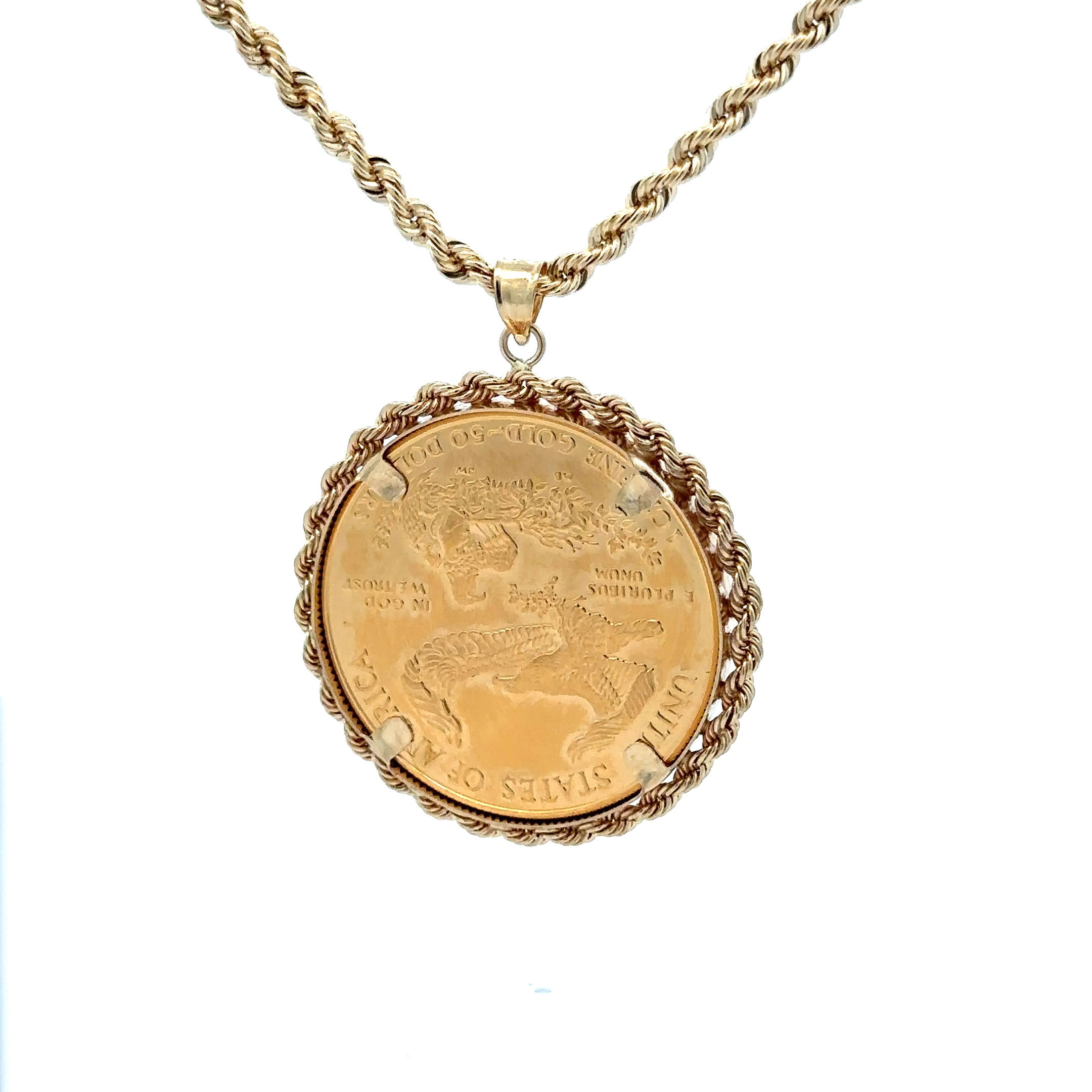 14KYG ROPE BEZEL PENDANT W/1986 1OZ US GOLD EAGLE COIN