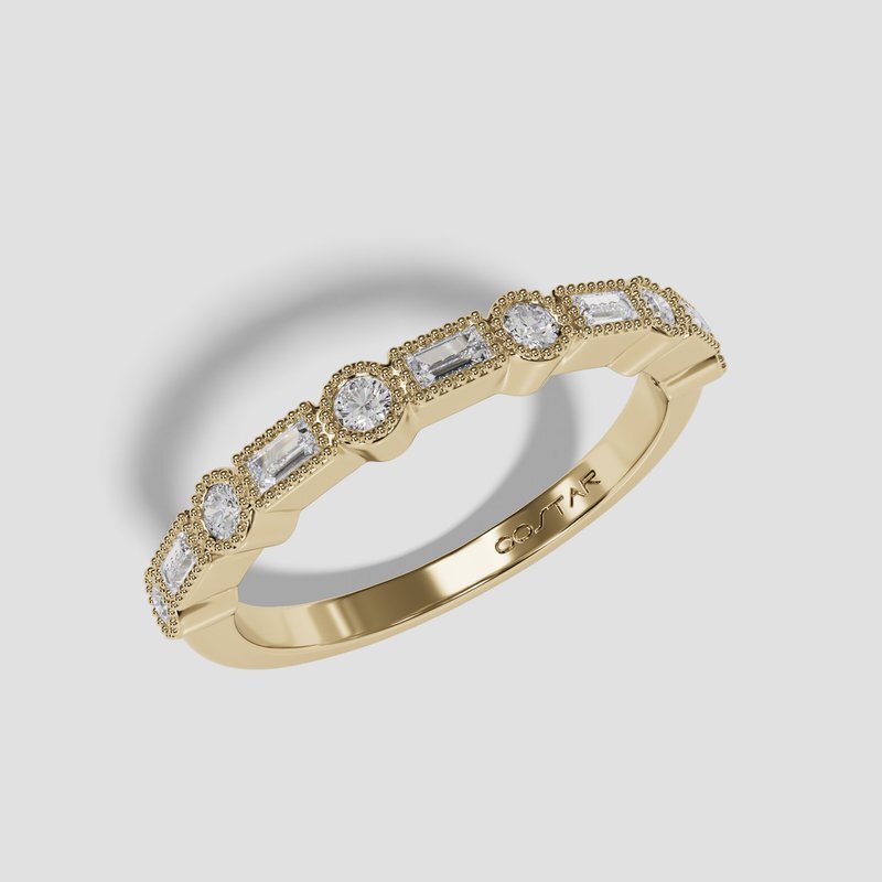 14KYG 6 BR & 5 BAG DIAMONDS 0.20CT MILGRAIN BEZEL SET BAND