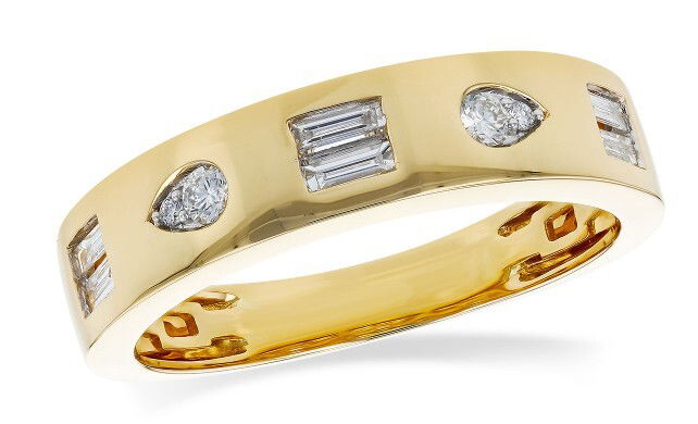 14KYG 6 BAGUETTES 0.25CT & 2 PEAR SHAPE DIAMONDS 0.18CT POLISHED FLUSH SET BAND