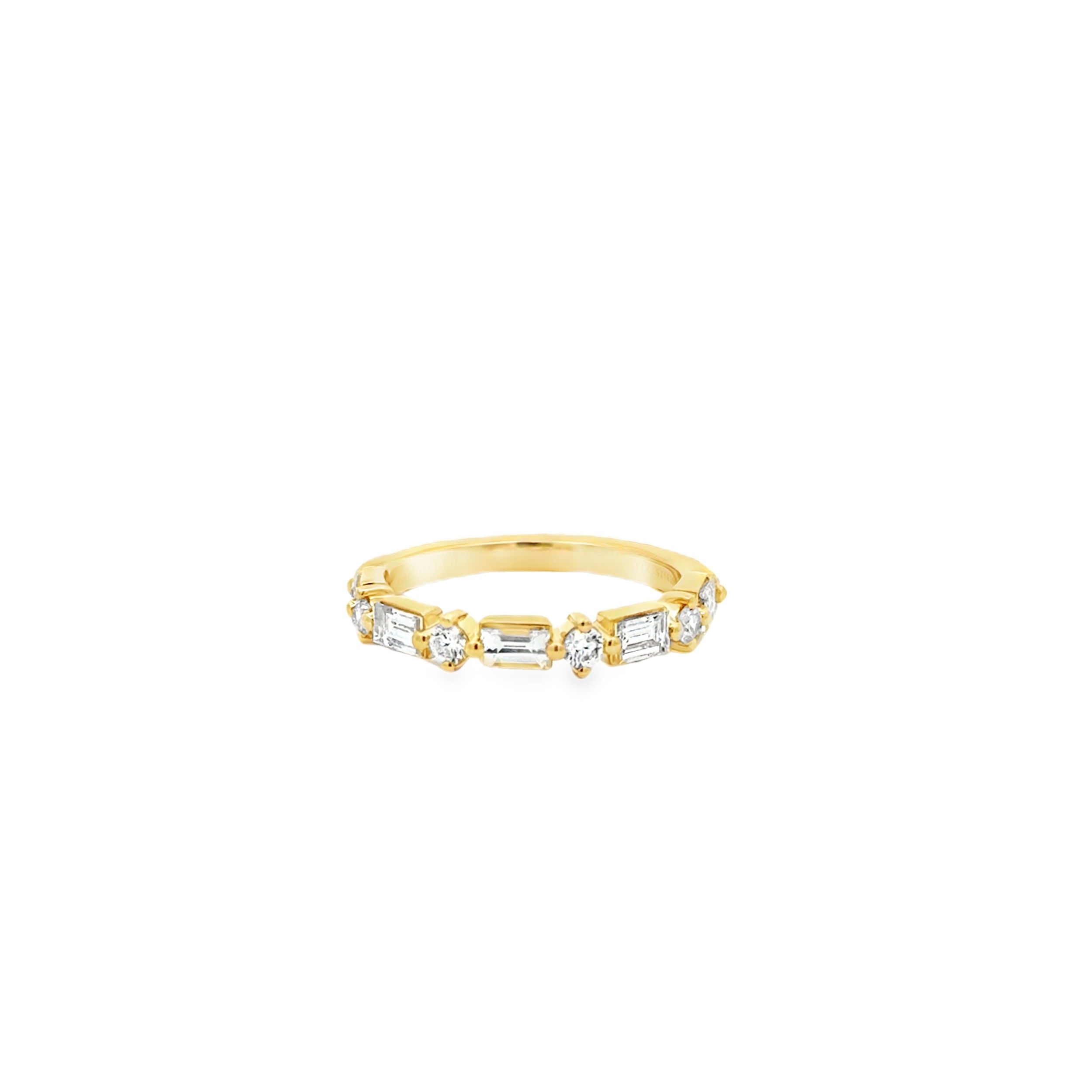 - 14K YELLOW GOLD 9 ROUND AND BAGGUETTE DIAMONDS 0.89CTW WEDDING BAND