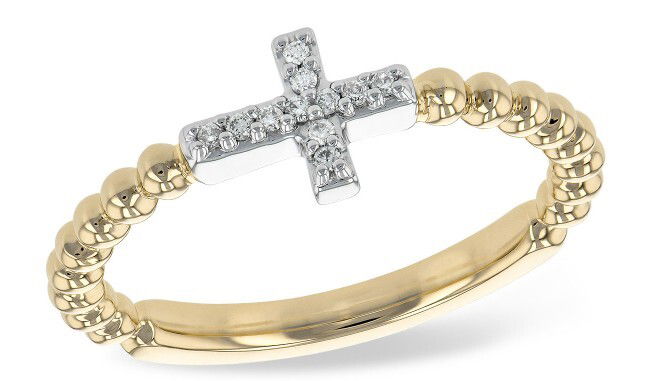 14KYG/WG 10 DIAMONDS 0.05CT HORIZONTAL CROSS RING W/BEADED BAND