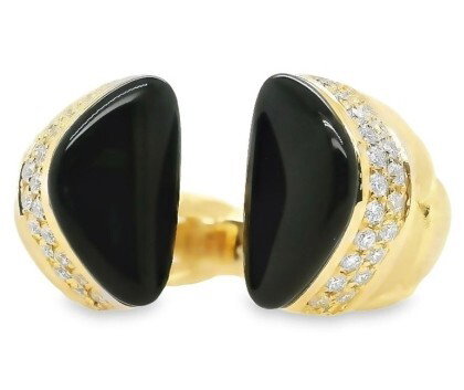 18KY ONYX & .64CTTW RD DIA SZ 8 RING