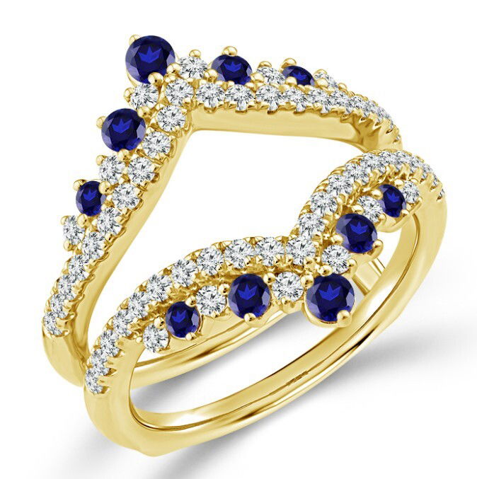 10KYG 10 BLUE SAPPHIRE 0.54CT & 54 BR DIAMONDS 0.60CT PRONG SET RING GUARD