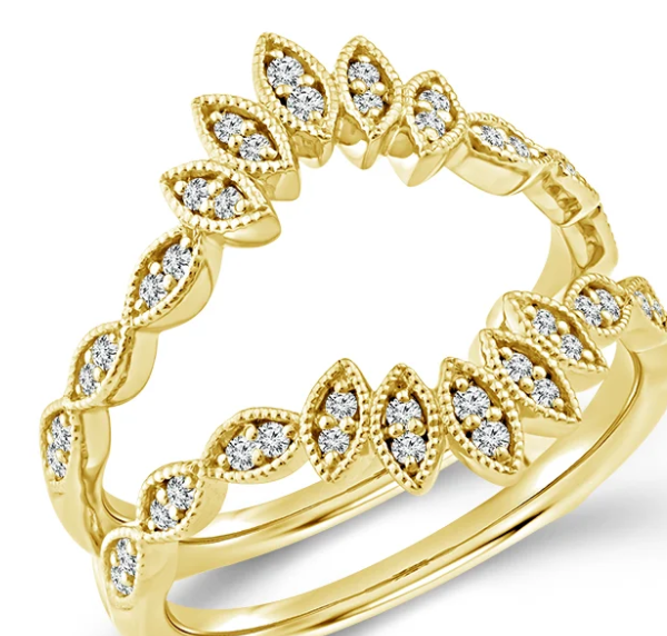 Enhance the brilliance of your treasured ring with this exquisite Women's Diamond Ring Guard, expertly crafted in 10K yellow gold. Featuring a delicate band adorned with sparkling genuine diamonds, this guard wraps elegantly around your center ring to add extra shimmer and sophistication. Perfect for updating your bridal set or adding a touch of luxury to your everyday style, this diamond ring guard showcases timeless beauty and lasting value. Make every moment unforgettable with this stunning, versatile accessory.