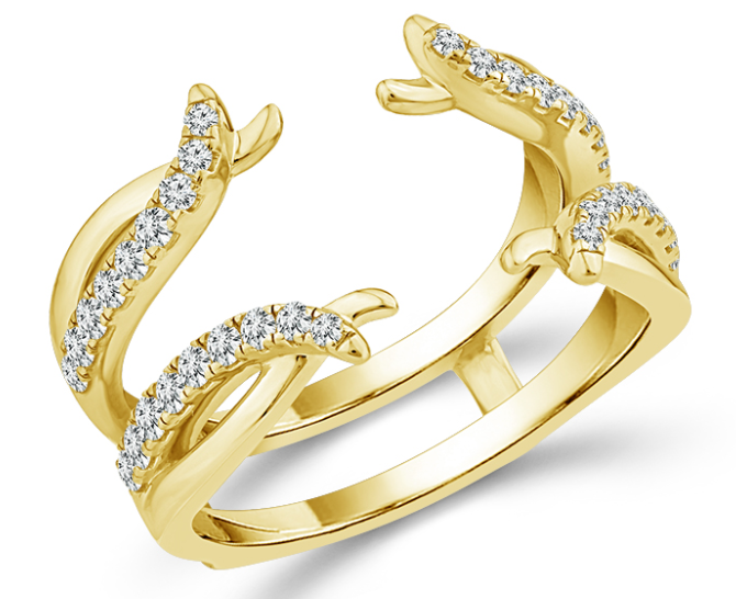 Enhance your treasured ring with this elegant Women's Diamond Ring Guard, beautifully crafted in 10K yellow gold. Designed to cradle and showcase your solitaire or engagement ring, this exquisite guard sparkles with shimmering diamonds, adding brilliance and sophistication to any look. Perfect for commemorating life's most special moments or upgrading your everyday style, this ring guard blends classic luxury with modern appeal for a truly timeless accessory.