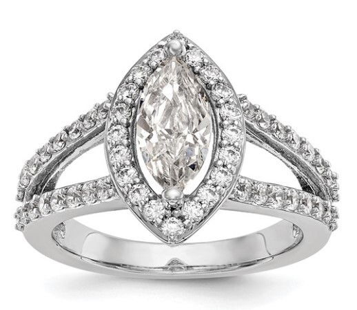 - 14KWG 52 BR DIAMONDS 0.75CT SPLIT SHANK MARQUISE HALO SEMI-MOUNT FOR 1.00CT CENTER