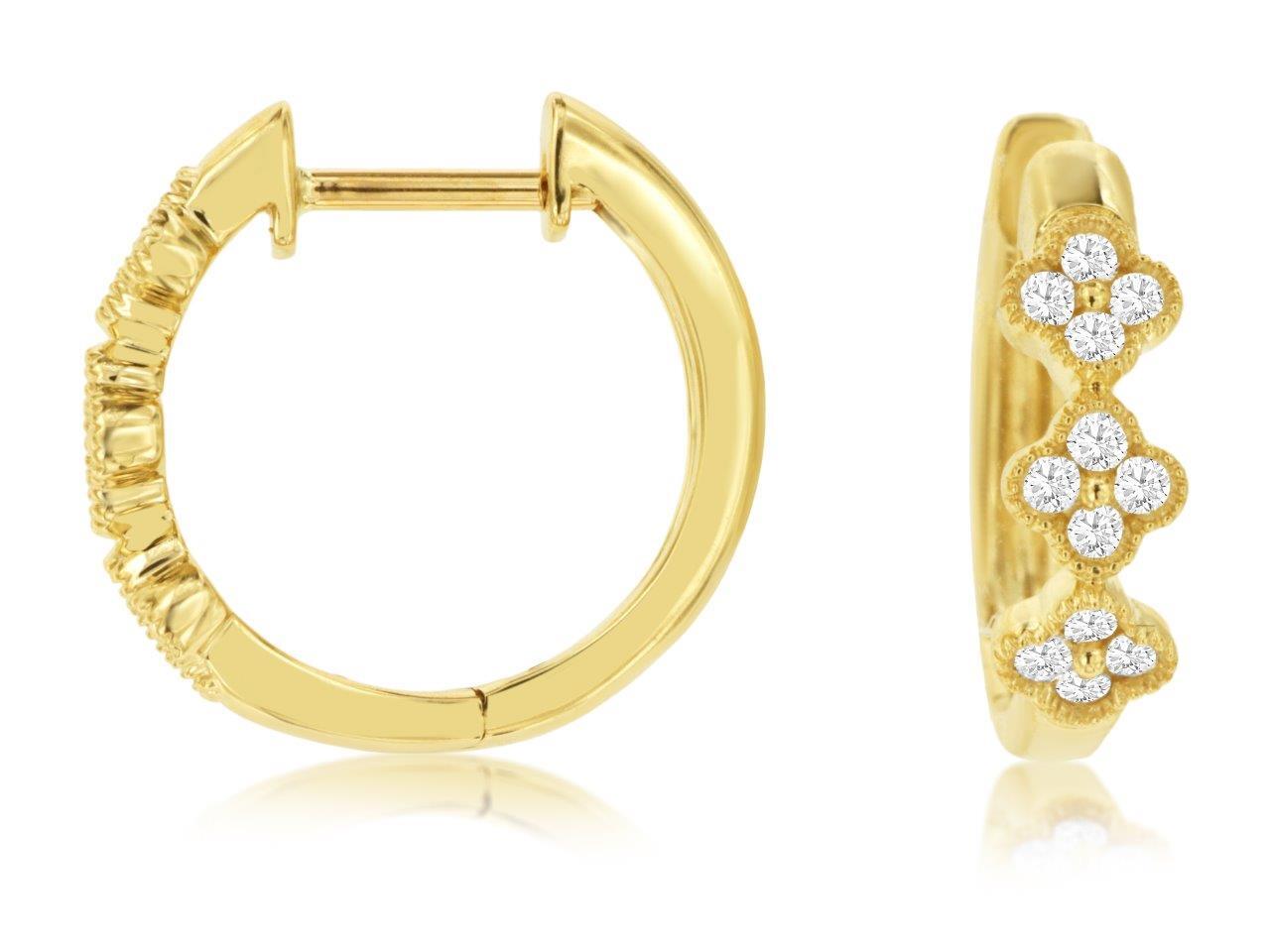 14KYG 24 RD DIA'S 0.21CTW "CLOVER" HUGGIE HOOP EARRINGS
