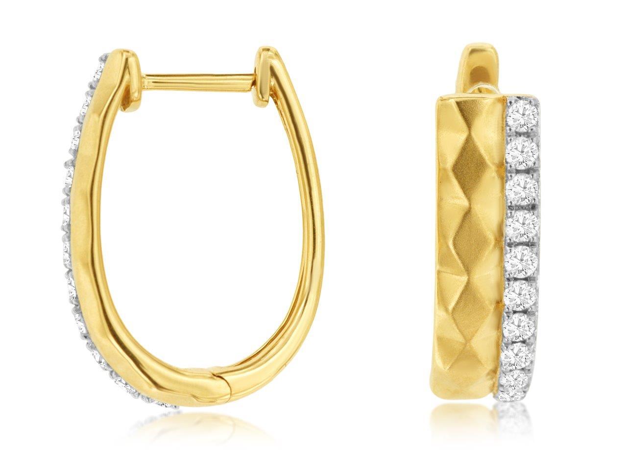 14KYG 22 RD DIA'S 0.50CTW DIAMOND-CUT SATIN FINISH FASHON HOOP EARRINGS