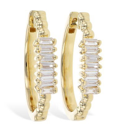 14KYG 14 BAGUETTE DIAMONDS 0.20CT BEADED HOOP EARRINGS