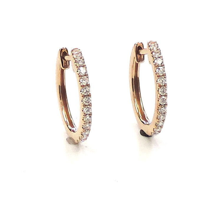 14KYG 15MM 24 ROUND DIAMONDS 0.25CT PRONG SET HUGGIE HOOP EARRINGS