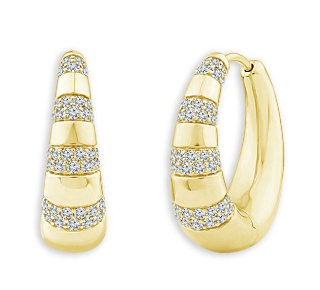 14KYG 132 ROUND DIAMONDS 1.00CT POLISHED GRADUATED HOOP EARRINGS
