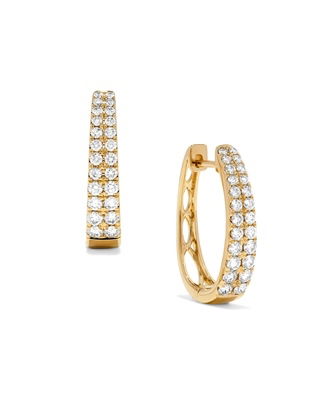 14KY 1.00CTTW RD DIAMOND 2-ROW HUGGIE HOOP EARRINGS