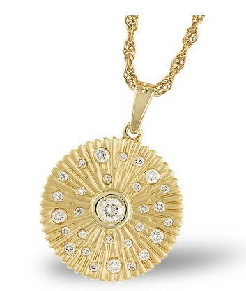 - 14KYG 30 ROUND DIAMONDS 0.24CT FLUSH SET FLUTED CIRCLE PENDANT W/18' CHAIN