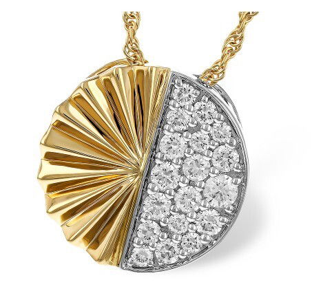 14KYG/WG 18 ROUND DIAMONDS 0.50CT DIAMOND CUT CIRCLE PENDANT ON 18" CHAIN