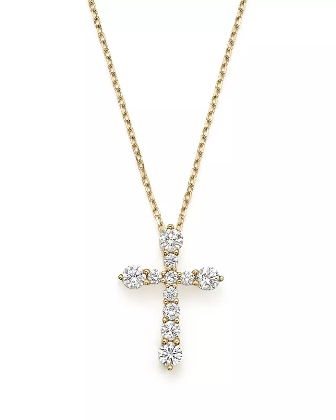 14KYG 11 ROUND DIAMONDS 0.50CT SHARED PRONG CROSS PENDANT W/18" CABLE CHAIN