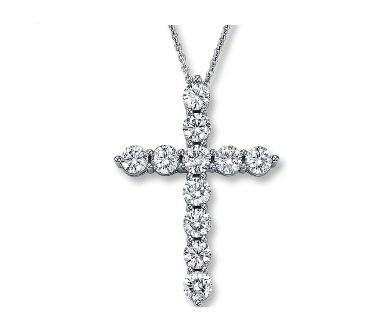 14KWG 11 ROUND DIAMONDS 1.00CT SHARED PRONG CROSS PENDANT W/18" CABLE CHAIN