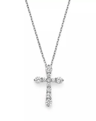 14KWG 11 ROUND DIAMONDS 0.50CT PRONG SET CROSS PENDANT W/18" CABLE CHAIN