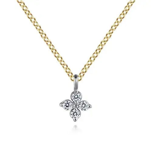 14KWG 4 BR DIA'S 0.09CTW PENDANT W/ YG CHAIN- 17.5"