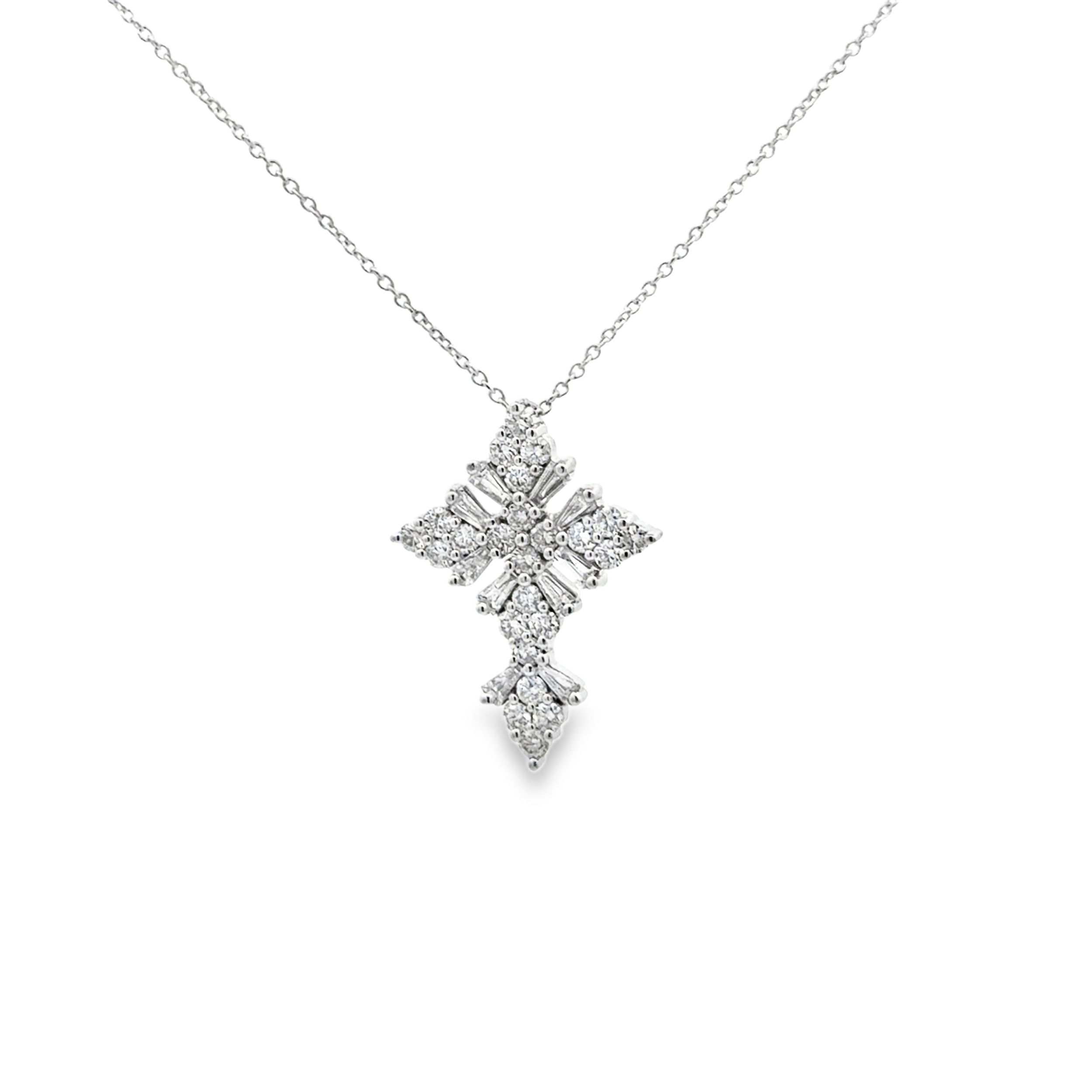 14KWG 10 BAGUETTE DIAMONDS 0.28CT & 24 ROUND DIAMONDS 0.63CT CROSS PENDANT W/18" CABLE CHAIN