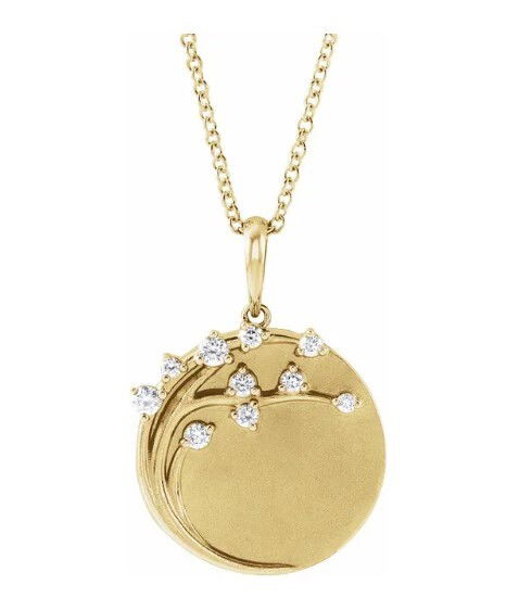 - 14KYG 10 ROUND DIAMONDS 0.13CT ENGRAVABLE FAMILY TREE PENDANT W/18" CABLE CHAIN