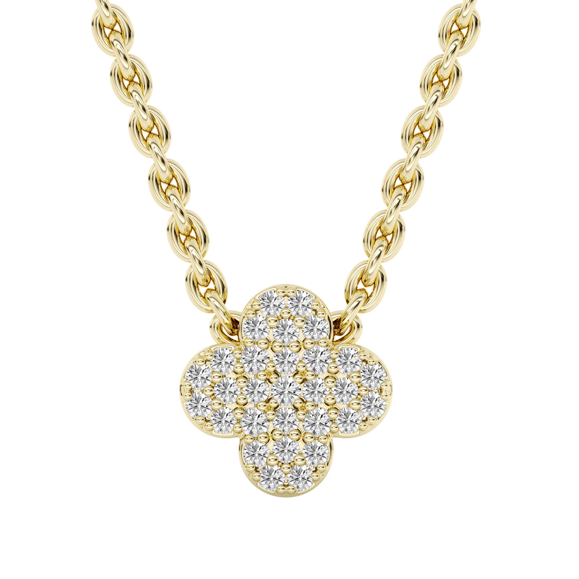 - 14KYG 29 DIAMONDS 0.08CT SMALL CLOVER SLIDE/PENDANT ON 18" ADJUSTABLE CHAIN
