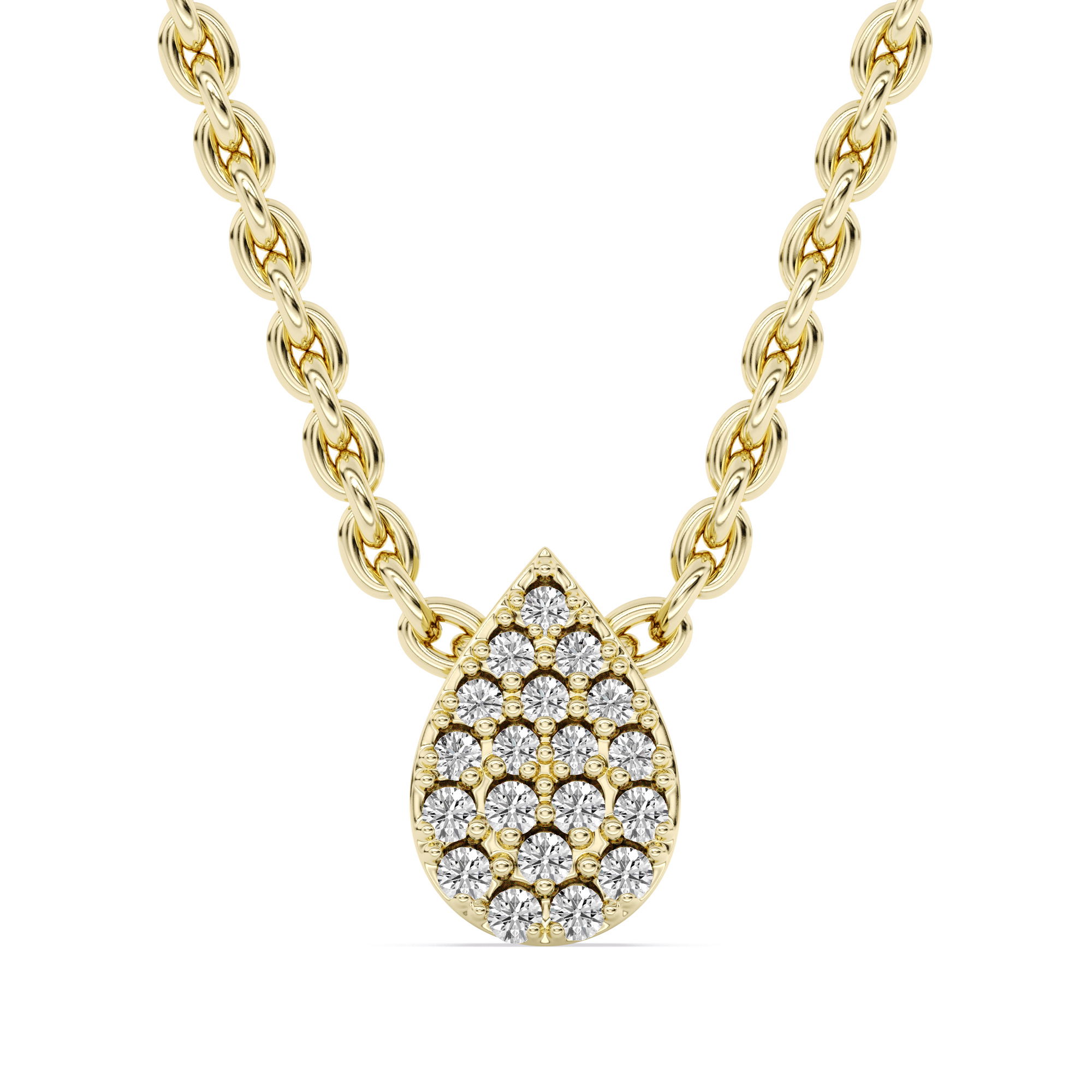14KYG 19 DIAMONDS 0.05CT SMALL PEAR SLIDE/PENDANT ON 18" ADJUSTABLE CHAIN