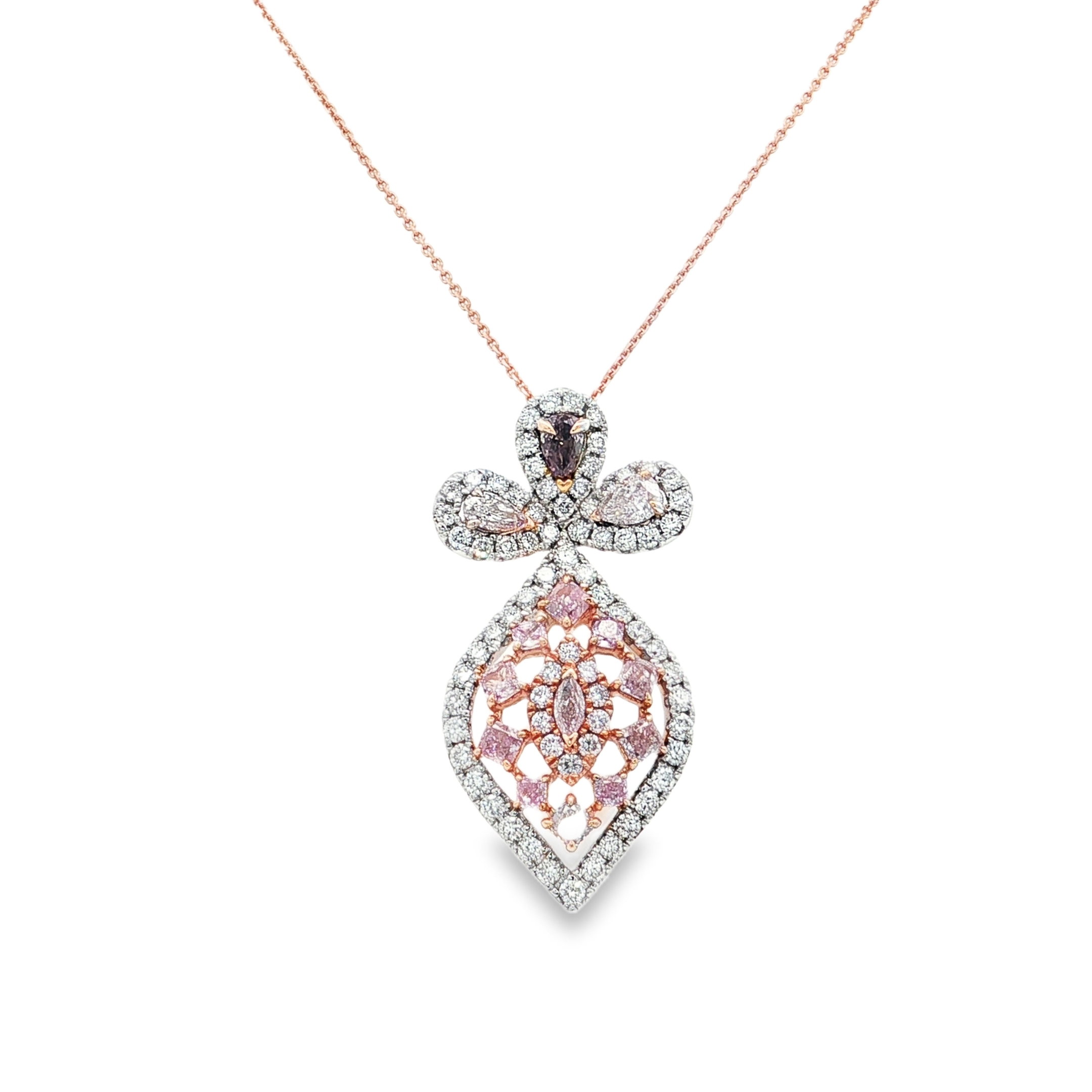 18KWR 1.35CTTW PINK DIA (CERT) & 1.09CTTW RD DIA PENDANT W/ 18" CHAIN