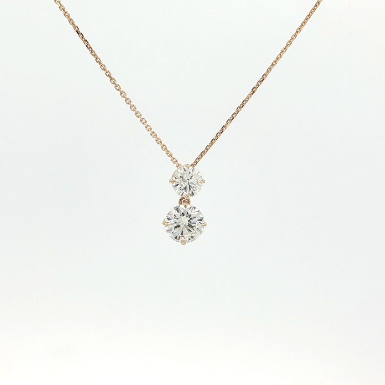 18KYG 1.50CTW DOUBLE DROP PENDANT: 1.00CT J/VS1 GIA#6525895511 & 0.50CT J/VS2 GIA#6525699537 ROUND ON 18" CABLE CHAIN